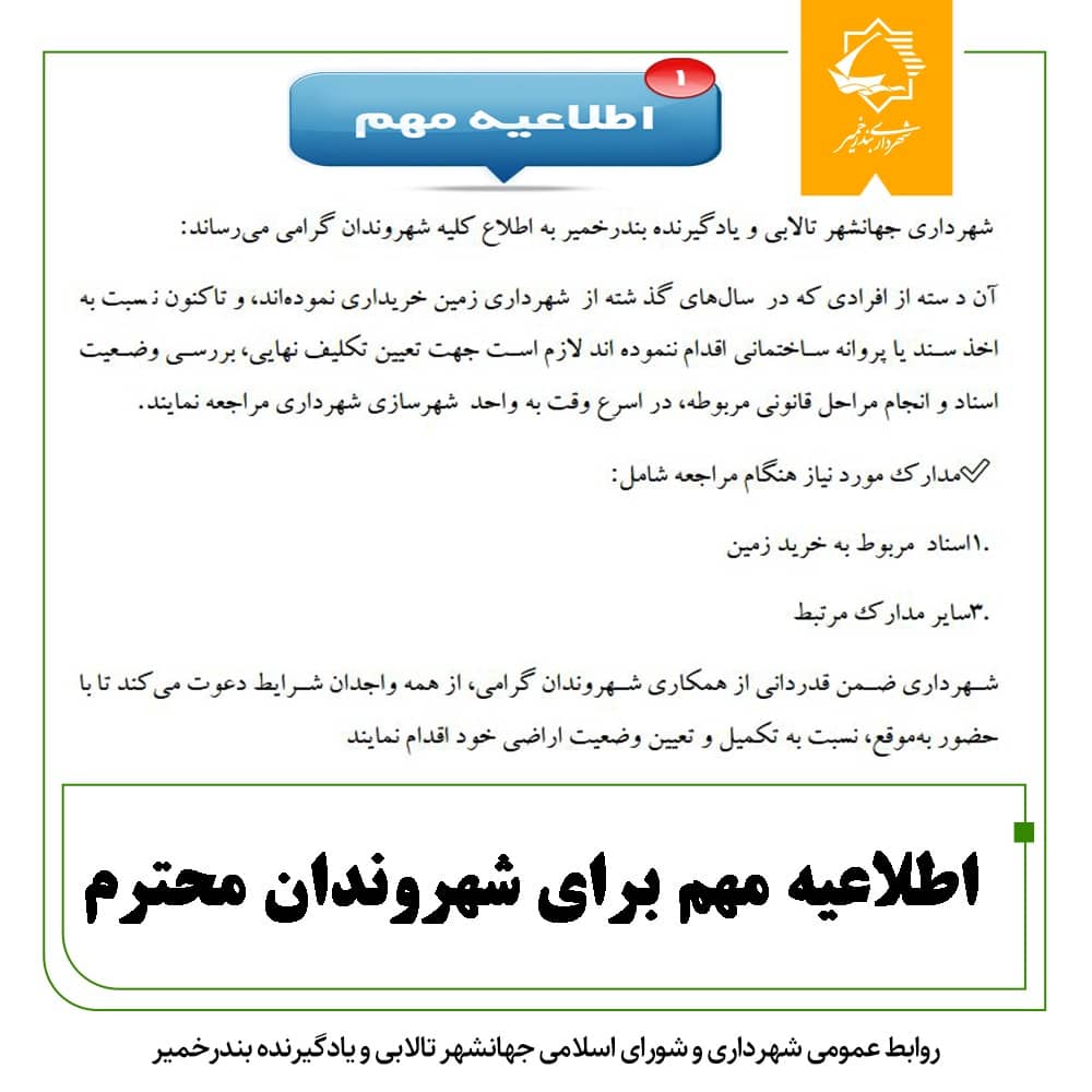 اطلاعیه شهرداری بندرخمیر درباره ساماندهی خودروهای سیار و دورهگرد شهری